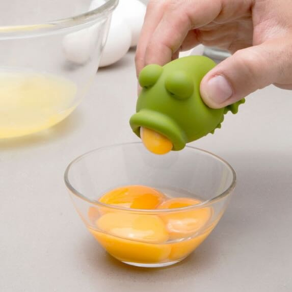 Eiersplitser kikker – snel en zonder geknoei eieren scheiden. Met deze eiersplitser Yolk Frog (kikker) wordt eiersplitsen een stuk eenvoudiger. Geen gedoe meer met eierschalen of geklieder boven een kom: één kneepje en de kikker slurpt moeiteloos het eigeel op. Zo scheid je eiwit en eigeel snel, hygiënisch en zonder verspilling.