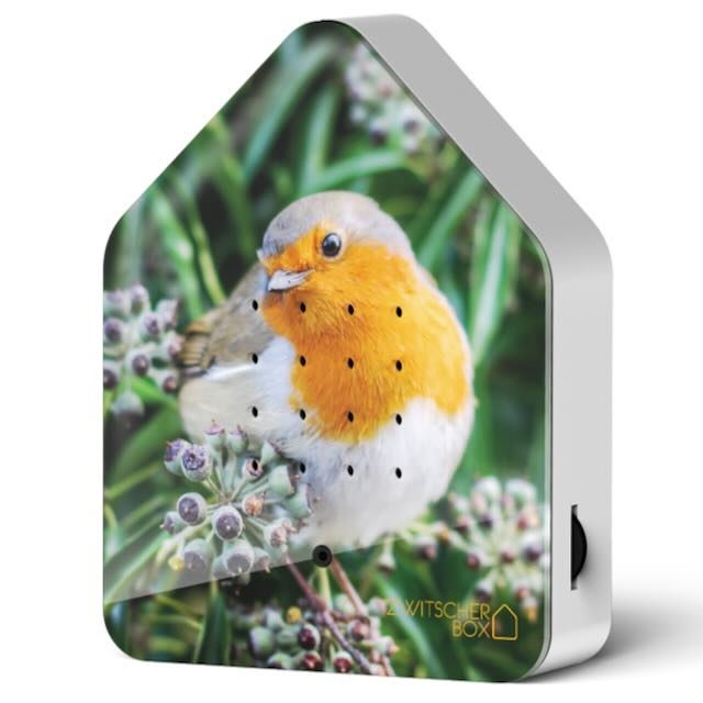- Er is ook een vogelhuisje met vogelgeluiden verkrijgbaar in een oplaadbare versie (deze doet het echter maar 20 seconden per keer en is minder geliefd als de Zwitscherbox)
